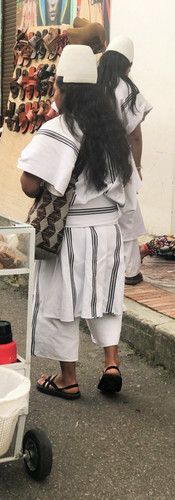 Buluşma yerine geri dönerken değişik yerel kıyafetli saçları uzun iki erkek gördüm. Bu topluluğa Arhuaco deniyormuş. Chibchan dilini konuşan kuzey Kolombiya'da Sierra Nevada de Santa Marta'da yoğunlaşan Tairona kültürünün torunları imiş. Kıyafetleri beyaz bir tunik ve keçeden bir şapka ve çok güzel el yapımı heybe şeklinde çantalar taşıyorlar. Genelde Bogota'da ve diğer büyük Kolombiya şehirlerinde hem erkekler hem de kadınlar arasında moda olan el yapımı çantalar yapıp satıyorlarmış. Kolombiya yerli halkları : 1- Arhuacos ; 2- Guambiano; 3- Muisca ; 4- Paez; 5- Pijao; 6- U’wa; 7- Embera; 8- Macuna; 9- Motilon; 10- Kogi; 11- Nukak; 12- Tikuna ;13- Yol; 14- Witoto; 15- Zenu. Kolombiya'nın yerli kabileleri 16. yüzyılda İspanyolların gelişinden önce bölgede bulunan etnik gruplar. Nüfusun yalnızca% 3,5'ini oluşturmalarına rağmen, yaklaşık 87 farklı kabileye dağılmış yaklaşık 1,5 milyon insanı temsil ediyorlarmış.