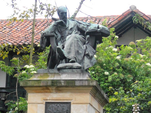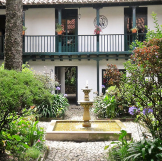 Biz Başpiskoposluğun yanındaki yoldan yürümeye devam ettik. Yolun sağında College of St. Bartholomew ve bahçesinde Camilo Torres’in [9] bir heykeli var. Sonra hemen Saint Ignatius of Loyola Kilisesi geliyor. Kilisenin karşısında birkaç anka kuşu palmiyesiyle çevrili bir bahçede Fransız Heykeltraş Charles Raoul Verlet (1857-1923) eseri olan filolog Rufino José Cuervo'nun [10] anıtı bulunuyor. Anıtın arkasındaki binalardan biri Antonio Nariño'nun [11] İnsan Hakları'nın ilk çevirisini düzenlediği İnsan Hakları Evi ve diğeri ise Bölgesel Kostümler Müzesi'nin faaliyet gösterdiği Bolivar’ın sevgilisi Manuelita Sáenz'in [12] konutu imiş.