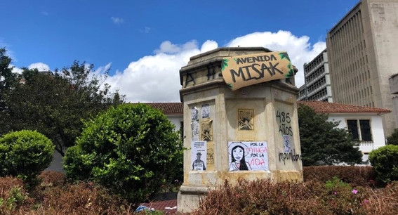 Parkın karşısında barok üslupta, 1557 yılından kalma mihrabın tamamı yaldızlı San Francisco Kilisesi onun yanında San Francisco Sarayı [2] yolun karşısında Rosario Üniversitesi ve 2021 yılına kadar ortasında Bogota şehrinin kurucusu ve fatih Gonzalo Jiménez de Quesada'nın [3] heykeli olan Rosario Meydanı var. Ancak 2021'de heykel, yerli Misaklar tarafından protesto için kaidesinden devrilmiş ve o zamandan beri Bogota müzesinin gözetiminde imiş. Misaklar veya Guambianoslar, Güney Kolombiya’ nın Cauca bölgesinde yaşayan yerli bir halkmış. Oradan yürüyerek 7. caddedeki 1948 yılı başkanlık yarışı kampanyasında suikasta uğrayan Kolombiya’lı politikacı Jorge Eliécer Gaitán’ın [4] öldürüldüğü yerdeki levhaları gördük. Hemen yanında İstanbul’da da şubeler açan Kolombiya’nın meşhur Juan Valdez Cafelerinden biri vardı.