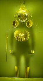 Ardından serginin üçüncü bölümü “kozmoloji ve sembolizm” altının mitolojisini ve neyi sembolize ettiğini araştırıyor. Ziyaret sırasında yerli halkların altını renginden dolayı güneşe benzettiklerini, altını güneşin teri olarak gördüklerini öğreniyoruz. Gücün sembolü olarak görülen bu metal yerli halkların siyasi ve dini seçkinleri içindi. İnsanlar değerinden çok parlak yönü nedeniyle altını felsefi ve dini kaygılarının ideal ifade aracı olarak görmüşler. Devamında serginin dördüncü bölümü olan “ Adak”da yaratılan altın metal eserlerin tanrılara hediye olarak sunulduğunu bu şekilde doğaya nasıl geri döndüğünü görebilirsiniz. Altın eserler derin dini anlamlarla donanmış olarak, dünyada dengeyi yeniden sağlamak için göllerde ve mağaralarda tanrıya sunulurlarmış. Bu şekilde metal döngüsü devam edermiş. Burası ayrıca ünlü “El Dorado” mitinin nasıl doğduğunu anlamamızı sağlıyor. 1536'da Bogotá bölgesinde ortaya çıkan ve fetihçiler tarafından aktarılan El Dorado efsanesi (İspanyolca: Altın kaplı, altından) kralların vücuduna altın tozu dökerek göldeki ritüel yıkanmaları ve tanrı için göle sunulan altından eserlerin varlığı ve bunların bulunma çabasını anlatıyor.