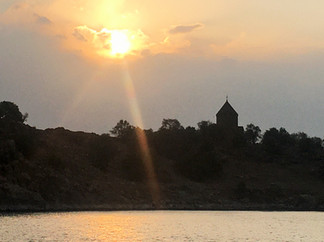 Tekne ile Akdamar Adasına geçtik. Adanın adının nereden geldiğine dair yaygın halk hikâyesine göre, zamanında bu adada yaşayan Ermeni baş keşişin güzelliği dillere destan Tamara adında bir kızı vardır. Adanın çevresindeki köylerde çobanlık yapan bir genç bu kıza âşık olur. Bu genç Tamara ile buluşmak için her gece adaya yüzer. Tamara ise ona gece karanlığında yerini belli etmek için onu bir fenerle bekler. Bundan haberdar olan kızın babası, fırtınalı bir gecede elinde fenerle adanın kıyısına iner ve sürekli yer değiştirerek gencin boşuna yüzüp, gücünü yitirmesine neden olur. Yüzmekten gücünü yitirip, yorulan genç çoban boğulur ve boğulmadan önce son nefesiyle "Ah Tamara!" diye haykırır. Bunu duyan kız da hemen ardından kendini gölün sularına bırakır O günden sonra ada Ah Tamara! ismi ile anlatılır. Bu hikâye Ermeni şair Hovhannes Tumanyan anlatımıyla efsaneleşmiş. Havanın düzelmesi ile grubun neşeli insanlardan oluştuğu hemen belli oldu müzikle oynayanlar çoktu. Adaya giriş ücretli bizde 60 TL verip yıllık Müze Kart aldık kiliseye doğru yürüdük.