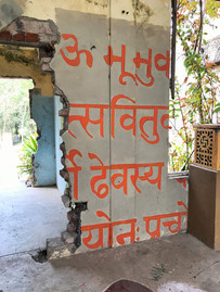 Ara bir kapıda Ashram’ın neyi nerede bulabileceğinize dair boyama ile yapılmış bir haritası var. Bütün her yer sanırım sonradan muhtelif sanatçılar tarafından resimlerle donatılmış. İçlerinde çok güzel olanları var. Harabeye dönmüş yerde dolaşırken nerede olduğunuzu anlamak için tabelalar koymuşlar. Tabelalardaki açıklamalar şöyle idi: