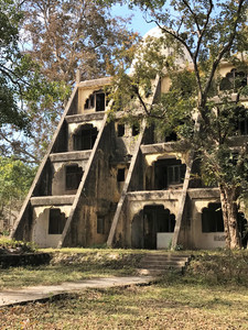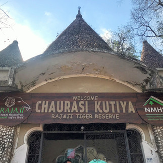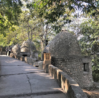 Kapıda Chaurasi Kutiya – Rajaji Tiger Reserve yazıyor. İçeride video çekimi yasak ancak fotoğraf çekebildim. Ashram açık bir alanda yukarı doğru merkezine yürürken sağda yumurta görünümlü inziva kulübelerini görmeye başlıyorsunuz.