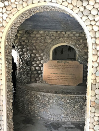 Tabela 1: Meditasyon Mağaraları: Bu yapılar, Sanyasiler ve Brahmacharilerin Sadhana uygulamalarını gerçekleştirmeleri için 1976-78 yılları arasında inşa edilmiştir. Yapılarda kullanılan yuvarlak taşlar Ganj nehrinin kıyısından alınmıştır.
