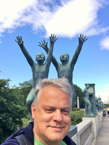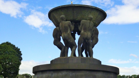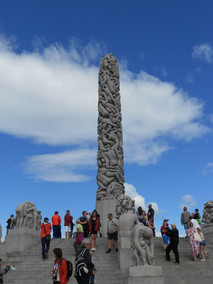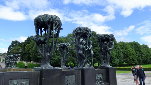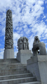 Oslo’daki ilk ziyaret yerimiz Vigeland Park oldu. Heykel sergisinin yanında, 3 bin ağaç ile 150 değişik cinste 14 bin gül çalısından oluşan gül bahçesi bulunan bu parkta ayrıca eski bir baraj gölü, çocuk parkı, olimpik yüzme havuzu, futbol stadyumu, kafe ve gene Vigaland Müzesi olarak anılan Oslo Şehir Müzesi yer alıyor. Heykel parkı, Norveçli heykeltıraş Gustav Vigeland’ın (1869-1943) granit, bronz ve dövme demirden yapılmış 200'den fazla heykelden oluşan eseri. Park esas olarak 1940-1949 döneminde kurulmuş, ancak 40 yılı aşkın bir çalışmanın sonucu. Maalesef Vigeland 1943 senesinde öldüğünden parkın son halini görememiş. Sadece tek bir sanatçı tarafından yapılan dünyanın en büyük heykel parkı beşikten mezara insanın yolculuğunu anlatıyor. Parkın girişinden başlayarak merkezde bulunan Monolit’e kadar 850 metrelik bir aksa yayılan bronz ve granitten yapılmış 212 heykel bulunuyor. Heykeller, pastoralden sürreale çeşitli formlarda ve çeşitli pozlarda çıplak insan figürlerinden oluşuyor ve insan formunu, insan yaşamını en saf haliyle inceliyor.