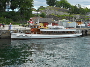 Yine kıyıda SS Volan isimli bağlı bir tekne kafe olarak kullanılıyordu. Limanda solda uzaktan Akershus Ortaçağ kalesi gözüküyor. Kale, 13. yüzyılın sonlarında Oslo'yu korumak amacıyla inşa edilmiş. Aynı zamanda kraliyet ikametgâhı ve hapishane olarak da kullanılmış. İki askeri müzeye ve etkinliklere ev sahipliği yapıyormuş. Yine kıyıda ilginç bir heykel var: Dykkaren, parlak paslanmaz çelikten tüplü paletli ve maskeli bir dalgıcın heykeli. Scuba teçhizatını kuşanmış denize atlamaya hazır metal dalgıç Oslo fiyortuna bakıyor. Sağa doğru yürümeye devam edince süreli sergilerin bulunduğu Alfred Nobel ve diğer Nobel ödülü sahipleri ile ilgili müze olan Nobel Barış Merkezi ve The National Museum’a geliyorsunuz. Ulusal Müze çok yeni 2022 yılında açılmış. İskandinavların en büyük müzesi. Yeni müze eski Ulusal Galeri, Çağdaş Sanat Müzesi ve Norveç Dekoratif Sanatlar ve Tasarım Müzesi koleksiyonlarından oluşuyor. Yaklaşık 6.500 nesneden oluşan kalıcı bir sergi var. Tasarım, sanat ve el sanatları, güzel sanatlar ve çağdaş sanat yan yana sergileniyor. Ayrıca gezenler Norveçli ressam Edvard Munch'un Çığlık (1893) ve Madonna(1894) dahil olmak üzere en ünlü tablolarını görebiliyorlar. Müze yanındaki Aker Brygge alışveriş merkezini gezdik.