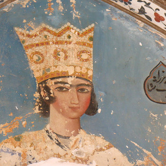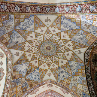 Buradan harika tavan süsleri yani yine üstü kapalı ve ortasında havuz olan bir mekana geliyorsunuz burası ise Kaçar Köşkü (Qajarid shotor galou). Buradaki havuzda bozukluk ve kağıt paralarla dolu. Duvarlarda Kaçar hanedanından Fath Ali Şah'ın 18 oğlunun freskleri var.