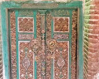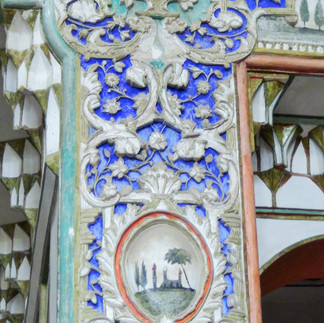 Buradan eski Avlu veya İmam Hadi (as) Avlusu olarak da bilinen yere geçtik. Avlu kare şeklinde ancak yedi revaklı ve biri altından. Google Map’de Muhammed Şah Kaçar'ın ve Fath Ali Şah Kaçar'ın mezarının da burada olduğu yazıyor. Bazı çatı süslemeleri de altından.