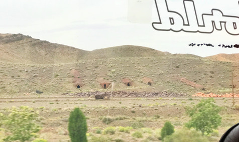 Dağ yönüne döndükten yarım saat sonra Abyaneh köyüne [14] ulaştık. Bu halkın bu kadar sapa yere yerleşme sebepleri 7.yy. Araplar saldırdığında Zerdüştlerin bir bölümü İslam dinine geçmemek için bu dağlara ve arasındaki vadilere kaçmışlar. Bu durum onların dil ve geleneklerini korumalarını sağlamış. Yol üzerinde kapıları olan bir sürü sığınak, mağara benzeri yerler gördük. Rehber bunların evlerin küçük olması nedeniyle ürünlerin saklandığı depolar olduğunu söyledi. Hayvan barınmasının yanı sıra kışlık erzak ve gereksiz eşyaların saklanması için de kullanılıyormuş. Köye yaklaşınca buranın turistik bir yer olduğunun ispatı Abyaneh Grand Restaurant Hotel’i gördük.