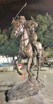 Polo oynayan at üzerinde bir adam ve Sheikh Baha'i [19] heykelini gördüm. İsfahan Müzik Müzesini geçip Chahar Bagh İlahiyat Okulu ve Negah resim ve görsel sanatlar müzesi arasındaki Abadegah sokağına girip Abbasi otele ulaştık. İran beni şaşırtmaya devam ediyor. Gelişimiz geç olduğundan otelin çay bahçesi kapanmıştı bizde dinlenmek için aynı yoldan otele geri dönüp istirahata çekildik.