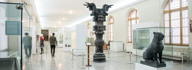 [11] İran Ulusal Müzesi: İki kompleksten oluşan bir kurumdur; sırasıyla 1937 ve 1972 yıllarında açılan Eski İran Müzesi ve İran İslam Arkeolojisi ve Sanatı Müzesi. Kurum, çömlek kaplar, metal objeler, tekstil kalıntıları ve bazı nadir kitaplar ve sikkeler de dahil olmak üzere korunmuş antik ve ortaçağ İran antik eserlerinden kalma tarihi eserlere ev sahipliği yapmaktadır. Ayrıca farklı tarihsel dönemlere ve arkeolojik konulara göre kategorize edilmiş bir dizi araştırma bölümünü de içermektedir. Tarihçe: Antik İran Müzesi'nin tuğla binası 20. yüzyılın başlarında Fransız mimarlar André Godard ve Maxime Siroux tarafından tasarlanmış ve Sasani tonozlarından, özellikle de Ctesiphon'daki Taq Kasra'dan etkilenmiştir. Yaklaşık 11.000 m2 bir alana sahip olan müzenin inşasına 1935 yılında başlanmış ve Abbas Ali Memar ve Morad Tabrizi tarafından iki yıl içinde tamamlanmıştır. Daha sonra 1937 yılında resmi açılışı yapıldı. İslami Dönem Müzesi daha sonra Eski İran Müzesi'nin çimenli arazisi üzerine beyaz traverten ile inşa edilmiştir. İran Arkeolojik Araştırmalar Merkezi müdürü Firuz Bagherzadeh, bu binada İran arkeolojisi üzerine bir dizi sempozyum düzenledi. Binanın iç mekânı birkaç kez aceleyle değiştirildi ve 1979 Devrimi ülkeyi kasıp kavurduğunda hâlâ tadilat halindeydi. Eski İran Müzesi her zaman arkeolojik kalıntıların yanı sıra bazı nadir ortaçağ tekstil ve kilim parçalarını sergilemek için açık bir yetkiye sahipken, yeni kompleks İran'ın tarih öncesi Hazar Denizi bölgelerinden gelen enfes Amlash çanak çömleklerini de sergilemeye başladı. Bunu bazı modern çalışmalar ve iç mekanın tekrar tekrar boşaltılması ve yeniden modellenmesi izledi. Eski İran Müzesi iki kattan oluşmaktadır. Salonlarında Alt, Orta ve Üst Paleolitik dönemlerin yanı sıra Neolitik, Kalkolitik, erken ve geç Tunç Çağı ve Demir Çağı I-III ile Med, Ahameniş, Selevkos, Part ve Sasani dönemlerine ait eserler ve fosiller bulunmaktadır. Daha yeni olan kompleks üç kattan oluşmaktadır. İran'ın klasik sonrası dönemine ait çeşitli çanak çömlek parçaları, tekstil ürünleri, metinler, sanat eserleri, usturlaplar ve kerpiç kaligrafi içermektedir.