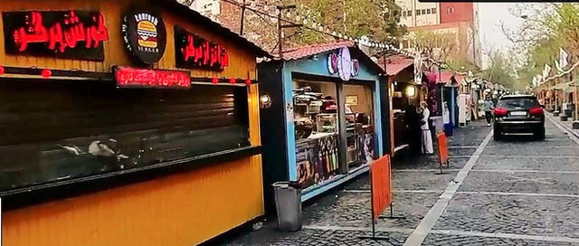 Biz kendimizi otobüse attık yol üstünde Bagh-e Melli kapısını [10] gördük ve İran Ulusal müzesi yakınında indik. Müzenin yan sokağında sıra sıra fast food tezgahları ve büfe tarzı yerler var. Yiyeceğini alıp karşıda bulunan masa yerine yüksek varil üstünde, tabure olarak alçak varillere oturup yiyorsun. Biz odun ateşinde köfte yedik. Ben 300.000 riyal yani 128 TL ödedim.