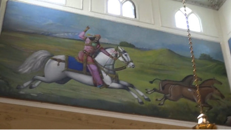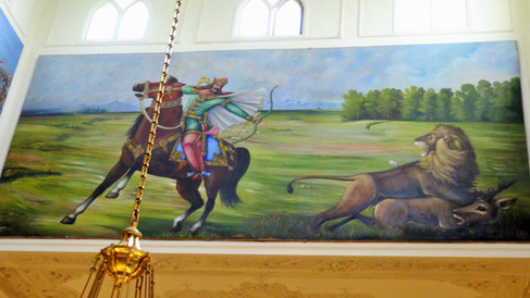 Üst kattaki güneş ile aydınlanmayı sağlayan bölümde İran'ın meşhur mitlerini konu alan dört büyük yağlıboya duvar resmi var.