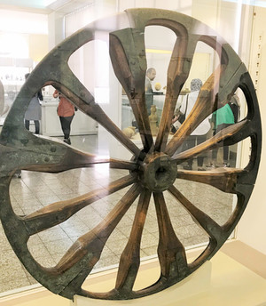 Oradan hemen Ulusal Müzeye [11] gittik. Giriş 100.000 Riyaldi ama ödemedik. Müzenin giriş tonozu çok güzeldi. (Tonoz; mimarlıkta kemerlerin bir araya gelmesiyle oluşturulan, genellikle tavan örtüsü olarak işlev gören yapı parçasıdır.) Rehber Arvin daha önce Tebriz Arg’ındaki Alişah Camii ve burada yapılan tonoz denemelerinin aslında Bağdat bulunan Kisra sarayı [12] örnek alınarak yapıldığını ve içerideki büyük İran haritasında İran’ı anlattı. Sonra müzeyi gezmeye ve Antik Pers - Ahameniş İmparatorluğundan kalan çok güzel eserleri görmeye başladık. Bu imparatorluk ile detayları Persepolis’i gezerken vereceğim. Buradaki eserler alt paleolitik çağlardan başlayıp Kaçar hanedanına kadar 21 dönemde sergileniyor.