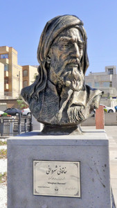 [5] Afzal al-Dīn Badīl ibn ʿAlī ibn ʿOthmān, genellikle Khāqānī olarak bilinir (1120 - 1199), önemli bir Farsça şair ve nesir yazarıydı. Transkafkasya'da, Şirvan olarak bilinen tarihi bölgede doğmuş ve burada Şirvan şahlara kaside yazarı olarak hizmet etmiştir. Ünü en çok Divân'ında topladığı kasidelerine ve otobiyografik seyahatnamesi Tohfetü'l-Erâkîn'e dayanır. Daha sonra habsiyât ("hapishane şiiri") olarak bilinen türü keşfetmesiyle de dikkate değerdir.