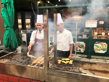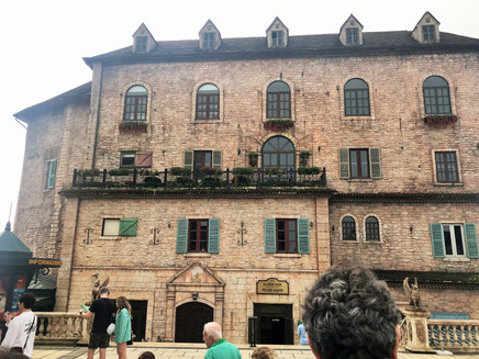 Rehber bizi yemek ve gezmek için 2 saat serbest bıraktı. Bende hızlıca bu büyük kopya Fransız köyünü gezmeye başladım. Her yer şato benzeri binalar ile dolu. Bazı yerlerde çocuklar için yılbaşı temalı oyun alanları yaratılmış. Napoleon Balo salonu isimli güzel bir şatonun önünde fotoğraf çektirdim. Ana meydanın sonu büyük bir Ay kalesi isimli bir otele varıyor. Ancak giriş bir alt katta o nedenle otelin girişinin üst çatısındaki bir sürü heykel görülebiliyor. Geri dönüp nerede ne yiyebilirim diye gezmeye başladım.