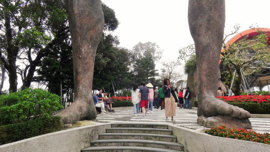 Köprünün bitiminde devlerin diğer uzuvları ayakları, başları yine elleri büyük boyutlarda sizi bekliyor. Gezi bitiminde aynı teleferik ile geri döndük. İndiğimiz istasyondan ilk teleferikten indiğimiz yere geri yürüdük.