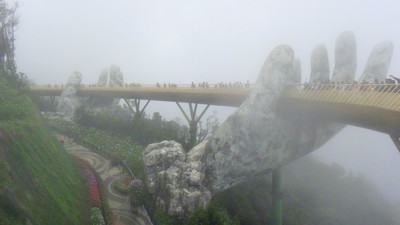 Grupla tekrar buluşup kayalıklardan uzanan devlerin elleriyle desteklenen figürüyle Altın Köprü’ye gitmek için başka bir teleferik hattına bindik. Kısa süren bu yolculuktan sonra vardığımız deniz seviyesinden 1.414 m yükseklikte yer alan Altın Köprü, 2021 yılında The Daily Mail tarafından dünyanın 10 yeni harikasından biri olarak seçilme onuruna layık görülmüş. Buraya gelme şerefine epey fotoğraf çektik, çektirdik.