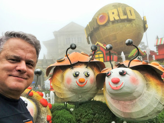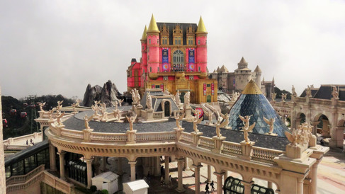 Tekrar otobüse binerek yaklaşık 1 saat 20 dakika sonra Ba Na Hills SunWorld eğlence parkına ulaştık. Da Nang şehri, Hoa Vang bölgesi, Hoa Ninh komünü, An Son köyünde bulunan ve 2009'dan bu yana faaliyette olan Sun World Ba Na Hills, Vietnam'ın Disneyland’ı olarak kabul ediliyor. Deniz seviyesinden 1.487 metre yükseklikte yer alan Sun World Ba Na Tepeleri, harika bir iklime ve muhteşem doğal manzaralara sahip. Şansımıza kış mevsimi olduğundan çok kalabalık yok.