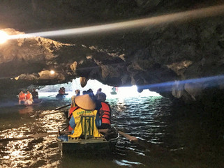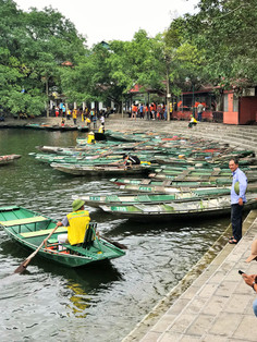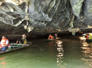 Burayı da gezdikten sonra tekrar otobüsler ile "Karadaki Ha Long Körfezi" de denen kireçtaşı mağaraları ve tarihi kalıntılardan oluşan bir sistem olan Tam Coc - Bich Dong mağara kompleksine yapacağımız nehir gezisi başlangıç noktası olan iskeleye vardık. Buradan iki kişilik Sampan adı verilen kayıklara biniliyor ve kayıkçı hareket etmek için ayaklarını kullanıyor. Biz Süheyla Acar hanımla bindik. Kayık sizi Ngo Dong Nehri'nde gezdiriyor. Gidiş-dönüş süresi yaklaşık 1,5 saat. Emeralda Resort Tam Coc, The Banana Tree Hostel, Golden Rice, Tam Coc River View Homestay, Tam Coc Bungalow gibi otellerin ve kireç taşı dağlar, pirinç tarlaları arasından muhtelif köprülerin altından geçiliyor.