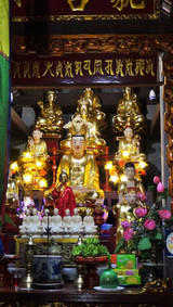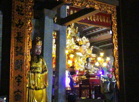 Pagoda da ana sunakta üç Buda neslini temsil eden üç adet Buda heykeli var. Sağ ve solda ise sekiz büyük generalin heykelleri bulunuyor. Tapınağın arkasındaki merdivenlerden çıkınca daha önce burada görev yapan rahiplerin mezarların bulunuyor.