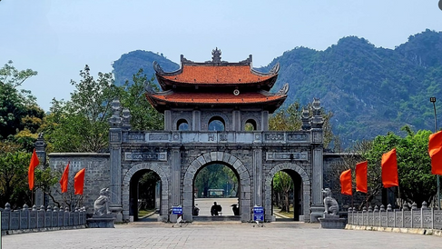 Dinh Bo Linh, Giap Than (924) yılının ikinci ayının dolunay gününde, Dai Huu köyü, Dai Hoang Chau'da (şimdi Gia Phuong komünü, Gia Vien ilçesi, Ninh Binh eyaleti) doğdu. Dinh Bo Linh, takma adı Dai Thang Minh Hoang, ulusal adı Dai Co Viet ve başkenti Hoa Lu olan İmparator olarak taç giydi. 970 yılında Dinh Bo Linh kendi dönemini Thai Binh olarak belirledi: “Bir saray inşa edin, bir mahkeme kurun, yüz mandarin belirleyin, altı birlik kurun”. Bu büyük kariyer tarihçi Le Van Huu tarafından şöyle yorumlanmıştır: “Tien Hoang yetenekli, insanlardan daha bilge, hayatta en cesur kişidir. Vietnam'ın sahibi olmadığı dönemde şefler güçlüydü, 12 elçinin hepsiyle savaştılar ve itaat ettiler, sonra ülkeyi açtılar ve başkenti kurdular, İmparator unvanını değiştirdiler, yüz mandarin yerleştirdiler, altı birlik kurdular, rejim neredeyse yeterliydi, eminim. Bu cennetin iradesidir çünkü ülkemiz Vietnam bir aziz doğurdu” (Dai Viet Su Ky Toan Thu). Dinh Tien Hoang Kral Tapınağı, Hoa Lu ilçesi, Truong Yen komününde, Hoa Lu Antik Başkentinin tarihi - kültürel kalıntısı olan Ma Yen dağının eteklerinde yer almaktadır. Efsaneye göre Kral Ly Thai To başkenti Hoa Lu'dan Dai La Kalesi'ne taşıdığında (1010) halk, ülkeye büyük yararlılıkları olan iki kahramanı anmak için eski sarayda Kral Dinh ve Kral Le'ye tapınmak üzere tapınaklar inşa etmiştir. İlk inşa edildiğinde tapınak kuzeye, Tiger ve Che dağlarına bakıyordu. Geç Le Hanedanlığı döneminde (On yedinci yüzyıl) halk tapınağı yeniden inşa etmiş ve bugün olduğu gibi doğu yönünde döndürmüştür. 1898 yılında tapınak restore edilmiş, taş eşik ve sütun kayası yapılmıştır. Tapınak “Noi Cong, Ngoai Quoc” tarzında inşa edilmiştir (içinde “工”, dışında “国” kelimesi vardır), ana yol 王 (kral) harfi şeklindedir. Dinh Tien Hoang Kral Tapınağı'nın iç kısmında, iki güzel yekpare yeşil taş istiridye ile çevrili bir taş ejderha bulunmaktadır. Yanında Nghi Mon Ngoai (dış kapı) ve 25 metre ötede Nghi Mon Noi (iç kapı) bulunmaktadır. Bu kapının Vietnam'daki en eski üç sütunlu mimari olduğu söylenebilir. İç kısımda, solda baba ve anneye (Kral Dinh'in babası ve annesi) ibadet edilen Khai Thanh tapınağı, sağda ise yaşlıların sunuları tartıştığı Vong evi yer almaktadır. İki sütunun arasından ejderha avlusu geçmektedir. Ejderha avlusunun ortasında saray törenini simgeleyen taş bir elek bulunmaktadır. Khai Thanh ve Vong evlerinin önüne baktığımızda iki “Vuon hoa ngoai” (bahçenin duvarı “ulusal” kelimesinin dış halkası gibidir) görürüz; sağdaki çiçek bahçesinde “Cuu Long” (dokuz ejderha) şeklinde bir kaya vardır. Soldaki çiçek bahçesinin ortasında ise “bir generale tapan insan figürü” görünümünde bir kaya bulunmaktadır. Gökyüzünü destekleyen sütunlar gibi duran iki bronz sütunun arasından geçerek, 1.80 m uzunluğunda ve 1.40 m genişliğinde nadir ve güzel bir sanat eseri olan Long Sang'ın (Kralın yatağı) yanında duruyoruz. Long Sang, kralın hükümdarlığı sırasında ejderha kaidesini sembolize eder, festival gününde bayrak, kase ve silah dikmek için iki sıra sütunla çevrilidir, mandarinlerin rütbelerini ve on orduyu temsil eden on ejderha kılıcını sembolize eder. Dinh Tien Hoang Kral Tapınağı'nda ibadet, tütsü yakma ve ana saray olmak üzere üç salon bulunmaktadır. En sonda ibadet salonu yer almaktadır. İbadet salonunun ortasında, isyanı bastıran ve ulusun birleşmesini başlatan Kral Dinh'in erdemlerini öven üç kelimelik “Ortodoks su” (ortodoksluğun başlangıcı) ile büyük bir yazıt vardır. Merkezde Kral Dinh'e ve Dinh hanedanının üç prensine tapınılan ana saray yer almaktadır. Ana sarayın ortasında Kral Dinh Tien Hoang'ın altın bronzdan dökülmüş, gümüşle boyanmış ve Nguyen Hanedanlığı döneminde yapılmış heykeli yer almaktadır. Binh Thien imzalı bir şapka, uzun yakalı bir gömlek giymekte ve imparatorun sembolü olan, görkemli ve ağırbaşlı bir görünüme sahip bir ejderhanın üzerinde oturmaktadır. Solda en büyük oğlu Nam Viet Vuong Dinh Lien'in heykeli; sağda ise Kral Dinh'in iki ikinci çocuğu Dinh Hang Lang ve Dinh Toan'ın heykeli yer almaktadır. Dinh Tien Hoang Kral Tapınağı on yedinci yüzyıldan kalma değerli bir mimari ve heykeltıraşlık eseridir. Birçok kez onarılmış olmasına rağmen, ejderhalara binen periler, yapraklara tapan iki ejderha, aya tapan iki ejderha temalarıyla Geç Le dönemine ait bir dizi heykel ve mimari unsuru hala oldukça sağlam bir şekilde korumaktadır... Bu heykeller sadece tapınağı daha görkemli bir şekilde süslemekle kalmıyor, aynı zamanda Hoa Lu'nun halk zanaatkârlarının üç yüz yıldan fazla bir süre öncesine ait mükemmel heykeltraşlık becerilerini de gösteriyor.