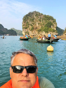 Gemimiz bir koyda konakladı. Bizi yine küçük bir tekne ile gezintiye çıkardılar. Tekne bizi bir sürü kayıkçının olduğu bir koya ve buradaki denizin üstünde inşa edilmiş evlerin olduğu bir iskeleye yanaştırdı. İskeleden bir kayıkçının ayakta elleri ile çektiği kürek ile hareket ettirdiği ve onla beraber sekiz kişilik kayıklara bindik. Ben hala tam anlamı ile iyileşemedim öksürmeye devam. Gruptan bazı arkadaşlar sarı renkli kanolara binmişler onlarla geziyorlardı. Suyun mevsim nedeniyle çekilmiş olduğu kıyılara bakınca çok bariz belli oluyor. Bu durum ayrıca kanoların kayalara takılıp kalmalarından büyük teknelerinde ortadaki nispeten yüksek olan suyolun da geçmek için sıra beklemelerinden belli oluyor. Bu bölge Cat Ba Milli Parkı ve görülecek yerler Işık ve Karanlık Mağara denen yerler. Ancak suyun çekilmiş olması kayıkların daha öteye gitmesine müsaade etmediğinden buraları göremedik.