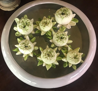 Benim dikkatimi restoranda ki beyaz lotus çiçekleri çekti.