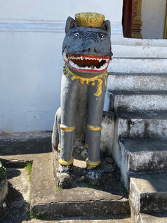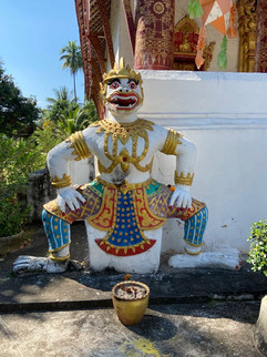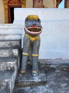 Karşısında Laos’un taç giymiş son kralı King Sisavang Vong’un [5] şalvarlı, ayağında çarıklı büyük bir heykeli var. Aynı heykel Vientiane'deki Vat Si Muang'ın önünde de bulunmakta imiş ve her iki heykel de 1960'lı yıllarda Sovyetler Birliği tarafından hediye edilmiş. Sisavang Vong "playboy kral" olarak tanınıyor. 10 karısı ve 50 çocuğu varmış ve bunlardan 14'ü Mekong Nehri'nde bir tekne kazasında ölmüş.