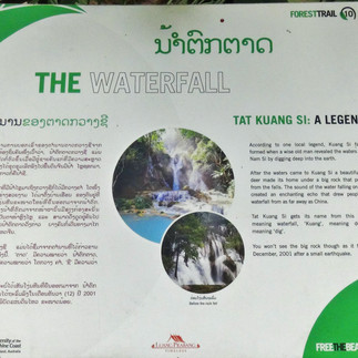 “TAT KUANG SI: BİR EFSANE : Bir yerel efsaneye göre Kuang Si şelaleleri, bilge bir ihtiyarın toprağı derin kazarak Nam Si'nin sularını ortaya çıkarmasıyla oluşmuştur. Sular Kuang Si'ye geldikten sonra güzel bir altın geyik, şelaleden çıkıntı yapan büyük bir kayanın altını kendine yuva edinmiştir. Bu kayanın üzerine düşen suyun sesi büyüleyici bir yankı yaratarak insanları Çin'e kadar uzak yerlerden şelaleye çekmiştir. Tat Kuang Si adını bu efsaneden almaktadır. Şelale anlamına gelen 'Tat', geyik anlamına gelen 'Kuang' ve 'kazı' anlamına gelen 'Si'. Aralık 2001'de küçük bir depremin ardından düştüğü için büyük kayayı göremeyeceksiniz.” En aşağıdaki büyük havuzda insanlar yüzüyordu, bizim gruptan insanlarda suya girdiler. Bende onların fotoğraflarını çektim.