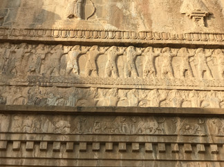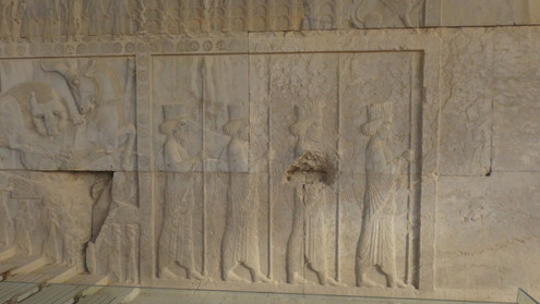 Geri merdivenlerden inip duvarın soluna geçtik. Bu duvar ise Pers İmp.'na tabi 23 ulusun delegelerinin haraç için getirdikleriyle gösterildiği kabartmalarla süslenmiş.