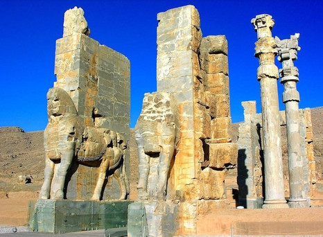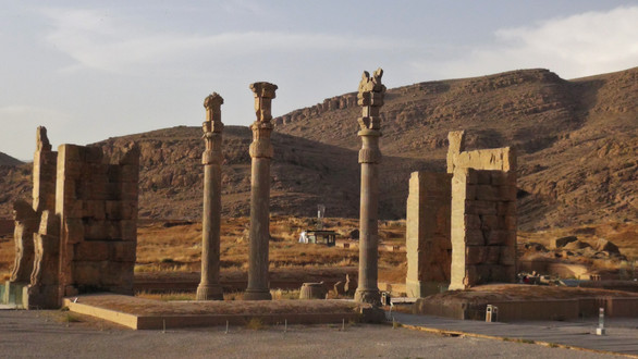 [8] Persepolis: Takht-e Jamshīd, (Cemşid'in Tahtı) (Cemşid : Şehname'ye göre İran'ın mitolojik Pişdadyan hanedanının dördüncü şahıdır.) Ahameniş İmparatorluğu'nun törensel başkentiydi (yaklaşık MÖ 550-330). İran platosunun güney Zagros dağlarıyla çevrili Marvdasht ovalarında yer almaktadır. Kompleks, duvarlarla çevrili bir platform üzerinde, beş "saray" ya da farklı büyüklükte salonlar ve büyük girişlerle inşa edilmiştir. Persepolis'in işlevi belirsizliğini korumaktadır. Bırakın imparatorluğun geri kalanını, İran'ın en büyük şehirlerinden biri bile değildi, ancak sadece mevsimsel olarak kullanılan büyük bir tören kompleksi gibi görünüyor; kralın özel odalarının gerçekte nerede olduğu hala tam olarak belli değil. Yakın zamana kadar çoğu arkeolog buranın esas olarak bahar ekinoksunda düzenlenen ve modern İran'da hala önemli bir yıllık şenlik olan Nevruz, yani Pers Yeni Yılı kutlamaları için kullanıldığını düşünüyordu. Merdiven kabartmalarında da gösterildiği gibi, İranlı soylular ve imparatorluğun kolonileri krala hediyeler sunmak için gelirlerdi. Alan, kısmen yapay olarak inşa edilmiş ve kısmen bir dağdan kesilmiş, doğu tarafı Rahmat Dağı'na yaslanmış 125.000 m2'lik bir teras içermektedir. Diğer üç taraf, yüksekliği zeminin eğimine göre değişen istinat duvarlarıyla oluşturulmuştur. Batı tarafında 5-13 m arasında yükselen bir çift merdiven vardı. Oradan da tepeye doğru hafifçe eğimlidir. Düz bir teras oluşturmak için çukurlar toprak ve ağır kayalarla doldurulmuş ve bunlar metal klipslerle birleştirilmiştir. MÖ 330 yılında Ahameniş Pers İmparatorluğu'nu işgal eden Büyük İskender, ordusunun ana gücünü Kraliyet Yolu üzerinden Persepolis'e gönderdi. Diodorus Siculus, İskender ve ordusunun şehre giderken Persler tarafından esir alınmış 800 Yunan zanaatkâr tarafından karşılandığını yazar. Çoğu yaşlıydı ve eksik bir el ya da ayak gibi bir tür sakatlıktan muzdaripti. İskender'e Perslerin şehirdeki becerilerinden yararlanmak istediklerini ama kolayca kaçamamaları için onları sakat bıraktıklarını anlattılar. İskender ve kurmayları bu hikâyeden rahatsız olmuş ve Persepolis'e doğru yola çıkmadan önce zanaatkârlara giysi ve erzak sağlamışlardır. Diodorus bunu Persepolis'in yıkımının bir nedeni olarak göstermez, ancak İskender'in bu karşılaşmadan sonra şehre olumsuz bakmaya başlamış olması muhtemeldir. Birçok tarihçi, İskender'in ordusunun bir sempozyumla kutlama yaparken Perslerden intikam almaya karar verdiğini iddia etmektedir. Eğer öyleyse, Persepolis'in yok edilmesi hem bir kaza hem de bir intikam vakası olabilir. Yangının, Pers direnişinin odağı haline gelebilecek Pers monarşisinin ikonik bir sembolünü yok etmek gibi siyasi bir amacı da olabilir. Çok daha sonraki bazı Yunan ve Roma kayıtları (Arrian, Diodorus Siculus ve Quintus Curtius Rufus dahil) yakmanın İskender'in generali Ptolemy I Soter'in metresi Thaïs'in ve muhtemelen İskender'in kendisinin fikri olduğunu anlatır. Bazı anlatılara göre, Yunan mabetlerinin yıkılmasının intikamını almak için (Atinalı idi) çok sarhoş bir kutlama sırasında bunu önerdiği ve ya kendisinin ya da İskender'in yangını başlattığı söylenir. Üçüncü ya da dördüncü yüzyılda yazılmış bir Zerdüşt eseri olan Arda Wiraz'ın Kitabı, Persepolis arşivlerinin "hazırlanmış inek derileri üzerine ve altın mürekkeple yazılmış tüm Avesta ve Zend'i" içerdiğini ve bunların yok edildiğini anlatır. Nitekim yerli İranlı yazar Biruni, Eski Milletler Kronolojisi adlı eserinde Ahameniş sonrası dönemde, özellikle de Part İmparatorluğu döneminde bazı yerli İran tarih yazımı kaynaklarının mevcut olmadığını belirtir. Şunları da ekler: "[İskender] Perslerden intikam almak için Persepolis'in tamamını yaktı, çünkü Pers Kralı Xerxes'in yaklaşık 150 yıl önce Yunan Şehri Atina'yı yaktığı anlaşılıyor.