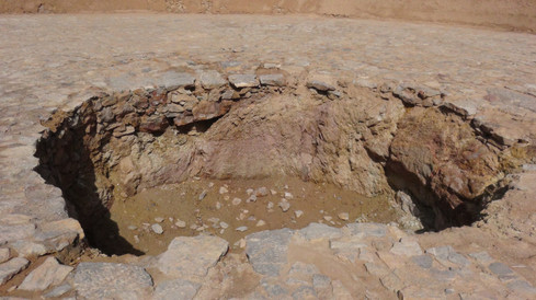 Üstünde Zoroastrians' Dakhmeh - Tower of Silence yazan kapıdan 150.000 İran Riyali ödeyip, gişeden geçip, açık ve boş görünen arazide yürümeye başlıyoruz. Bizi üzerinde bulunduğumuz yer ile ilgili açıklamalar olan beyaz tabelalar karşılıyor. Bunlarda yazan uzun açıklamaları aşağıdaki notlara [1] bırakıyorum. Önce su ihtiyacı için kullanılan su kuyusuna ve onun badgirine yani soğutma kulesine geliniyor.
