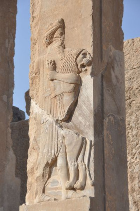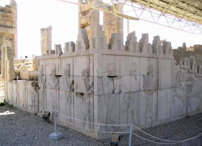 Devam edince Ana kapılarında Şehriyar ve Aslanın Savaşı [15] isimli Ahameniş mimari motiflerinden oymaların bol olduğu Yüz Sütun Sarayı [16]
