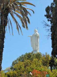 [19] San Cristóbal Tepesi'ndeki Lekesiz Gebelik Mabedi, Şili Katolik Kilisesi'nin başlıca ibadet yerlerinden biri olmasının yanı sıra Santiago, Şili'nin bir simgesidir. Özellikle deniz seviyesinden yaklaşık 863 metre yükseklikteki San Cristóbal Tepesi'nin zirvesinde yer alan büyük bir Lekesiz Gebelik heykeli ile dikkat çekmektedir. Lekesiz Gebelik heykelinin boyu 14 metre, üzerinde durduğu kaidenin boyu ise 8,3 metredir. Kaidenin üzerinde John Paul II'nin 1 Nisan 1987'de dua ettiği ve Santiago şehrini kutsadığı küçük bir şapel bulunmaktadır. Heykelin dibinde ayin veya diğer dini törenlerin düzenlenmesi için bir amfi tiyatro bulunmaktadır. Heykelin yakınında dua etmek için küçük bir şapel de bulunmaktadır. "Roma Bakiresi "nin bir reprodüksiyonu olduğuna inanılan heykel Luigi Poletti tarafından tasarlanmış olup Giuseppe Obici'nin bir eseridir. Fransız dökümhanesi Val D'Osne, dönemin Şili'nin Fransa Büyükelçisi Enrique Salvador Sanfuentes tarafından heykelin yapımı için görevlendirilmiştir. İlk taş 8 Aralık 1904'te yerleştirildi ve mabedin resmi açılışı 26 Nisan 1908'de yapıldı. 1987'de Papa John Paul II tarafından ziyaret edildi.