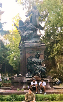 Oradan Plaza de Armas’ a yürüdük. Karşımıza “Yerli Halklara” isimli büyük boy parçalanmış bir yerliyi anlatan ve Yerli Mapuche halkının cesaretini onurlandırmak için heykeltraş Enrique Villalobos [11] tarafından yapılan heykel çıktı. Mapuche halkı 350 yıl boyunca İspanyol fatihlere karşı savaşmış. 16. yüzyıldan itibaren Mapuche, yabancı işgalcilere karşı savaşmak için askeri bir güç haline gelmek üzere toplumlarını radikal bir şekilde yeniden yapılandırmış. Mücadeleleri 1818'deki bağımsızlık ilanından sonra da devam etmiş. Ancak maalesef heykelin önünde sokakta yaşayan bir adam yanında bir köpekle perişan bir şekilde uyuyordu.